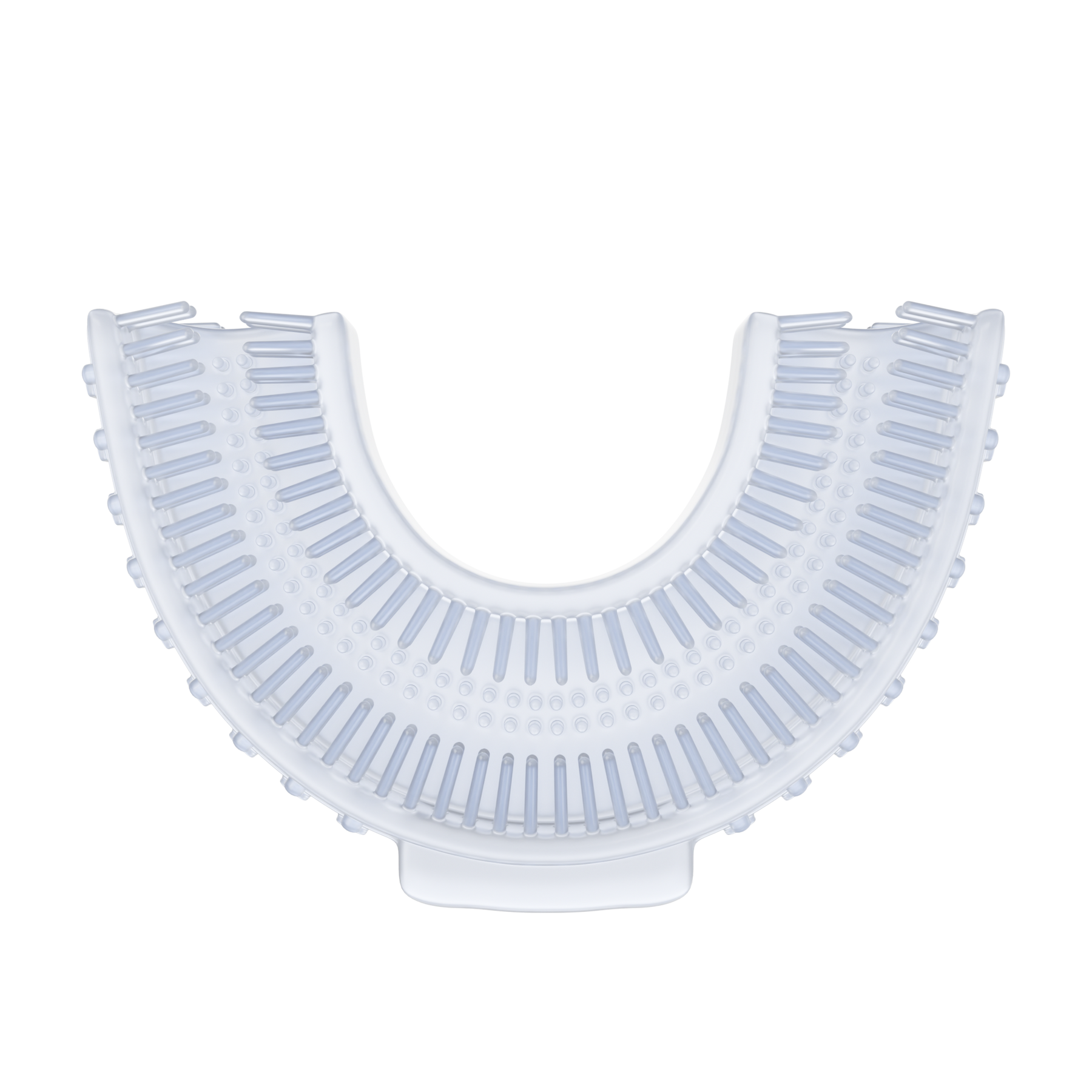 Het BrightBite™ Mondstuk is niet zomaar een onderdeel – het is het kloppende hart van jouw dagelijkse mondverzorging. Vervaardigd uit high-tech antibacterieel siliconen dat 99,99% van alle bacteriën elimineert en uitgerust met innovatieve 3D-borsteltjes aan beide zijden, voor een intensieve maar fluweelzachte reiniging.